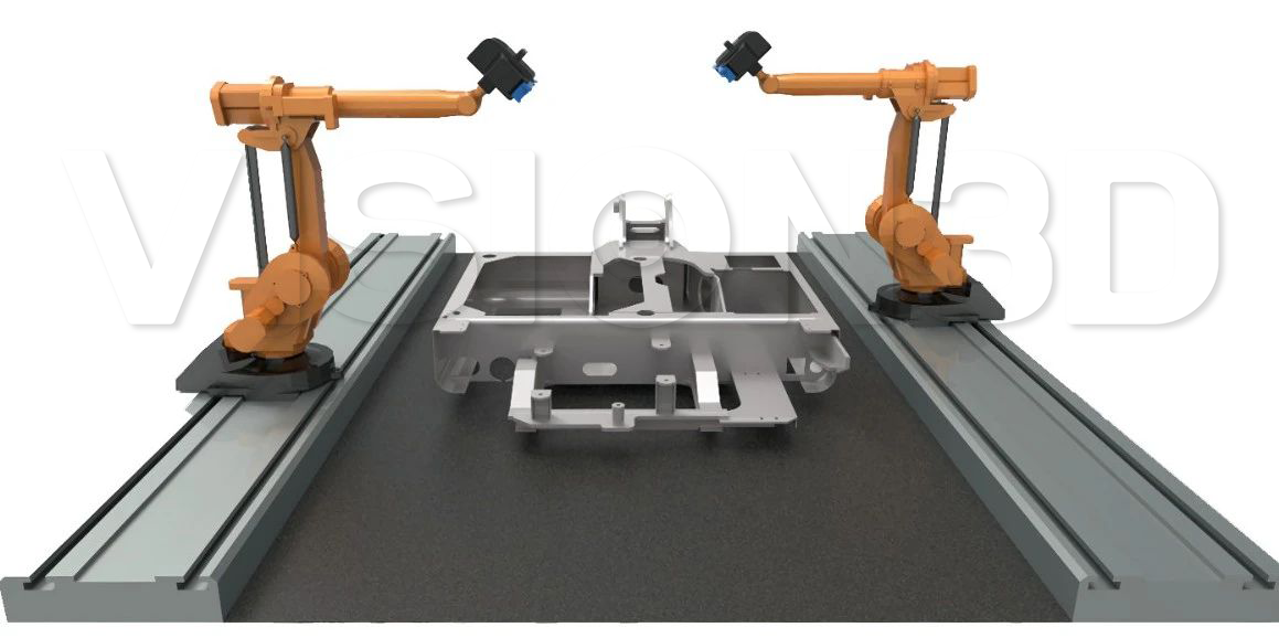 1.雙工位自動化測量系統(tǒng)可滿足汽車白車身全場測量,同時根據(jù)檢測需求,兩側(cè)工位機器人可進行不同區(qū)域零件的高精度檢測,車身整體全檢全測時間約為7 mins。