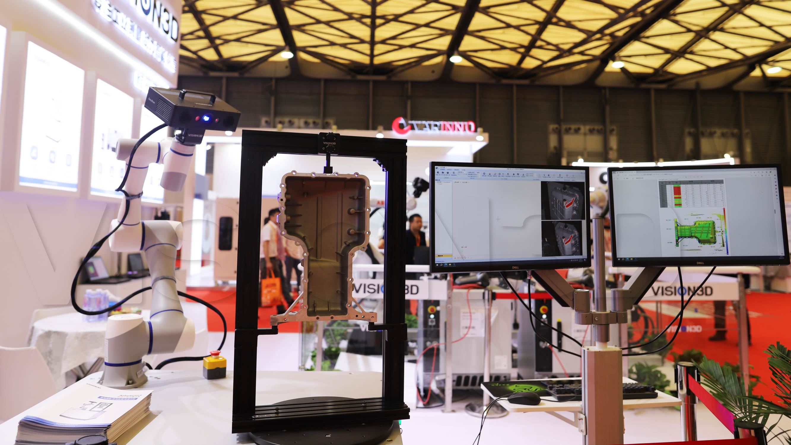 展會(huì)期間,惟景三維展臺(tái)人氣高漲,多款自動(dòng)化三維測(cè)量設(shè)備在展會(huì)大放異彩,輕松流暢的自動(dòng)化測(cè)量過程及實(shí)時(shí)顯示的掃描數(shù)據(jù)結(jié)果得到了現(xiàn)場(chǎng)觀眾的廣泛關(guān)注與駐足,現(xiàn)場(chǎng)觀眾及來訪客戶對(duì)惟景三維的自動(dòng)化三維測(cè)量設(shè)備及三維數(shù)字化解決方案展現(xiàn)出濃厚興趣,并與現(xiàn)場(chǎng)工作人員就設(shè)備在汽車制造及其他相關(guān)領(lǐng)域的實(shí)際應(yīng)用進(jìn)行了深入的探討交流。