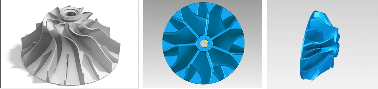 測(cè)量速度快,掃描點(diǎn)云數(shù)據(jù)密度高,通過獲取的葉輪3D數(shù)據(jù),判定葉輪制造質(zhì)量并可用于產(chǎn)品的改型及仿形設(shè)計(jì)。