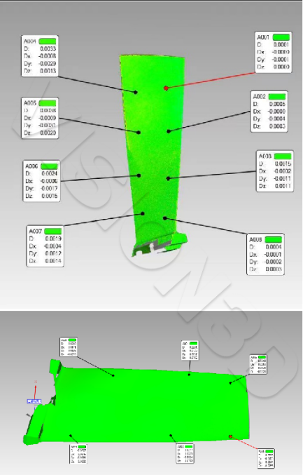 為提高葉片的測(cè)量精度及效率,惟景三維研制了葉片自動(dòng)化三維測(cè)量系統(tǒng),可實(shí)現(xiàn)多片葉片自動(dòng)上下料和自動(dòng)三維測(cè)量,基于測(cè)量結(jié)果可對(duì)葉片的弦長(zhǎng)、葉厚、葉緣R參數(shù)等進(jìn)行自動(dòng)分析,判定葉片是否合格。