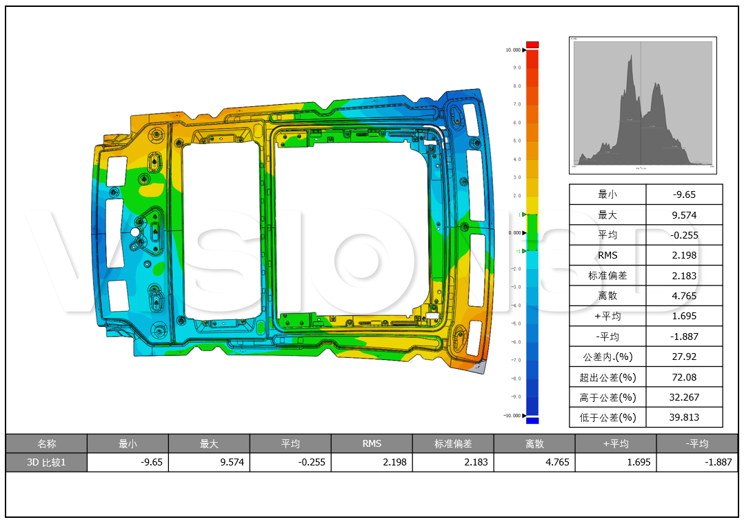 在汽車頂蓋件的制造過程中,鈑金不可避免的會出現(xiàn)回彈或變形。因此,對其型面、輪廓及孔位等關(guān)鍵尺寸進行精度檢測,將檢測數(shù)據(jù)進行深度分析,用以生產(chǎn)工藝的優(yōu)化,保障制件成型精度,避免影響后續(xù)裝配工藝。