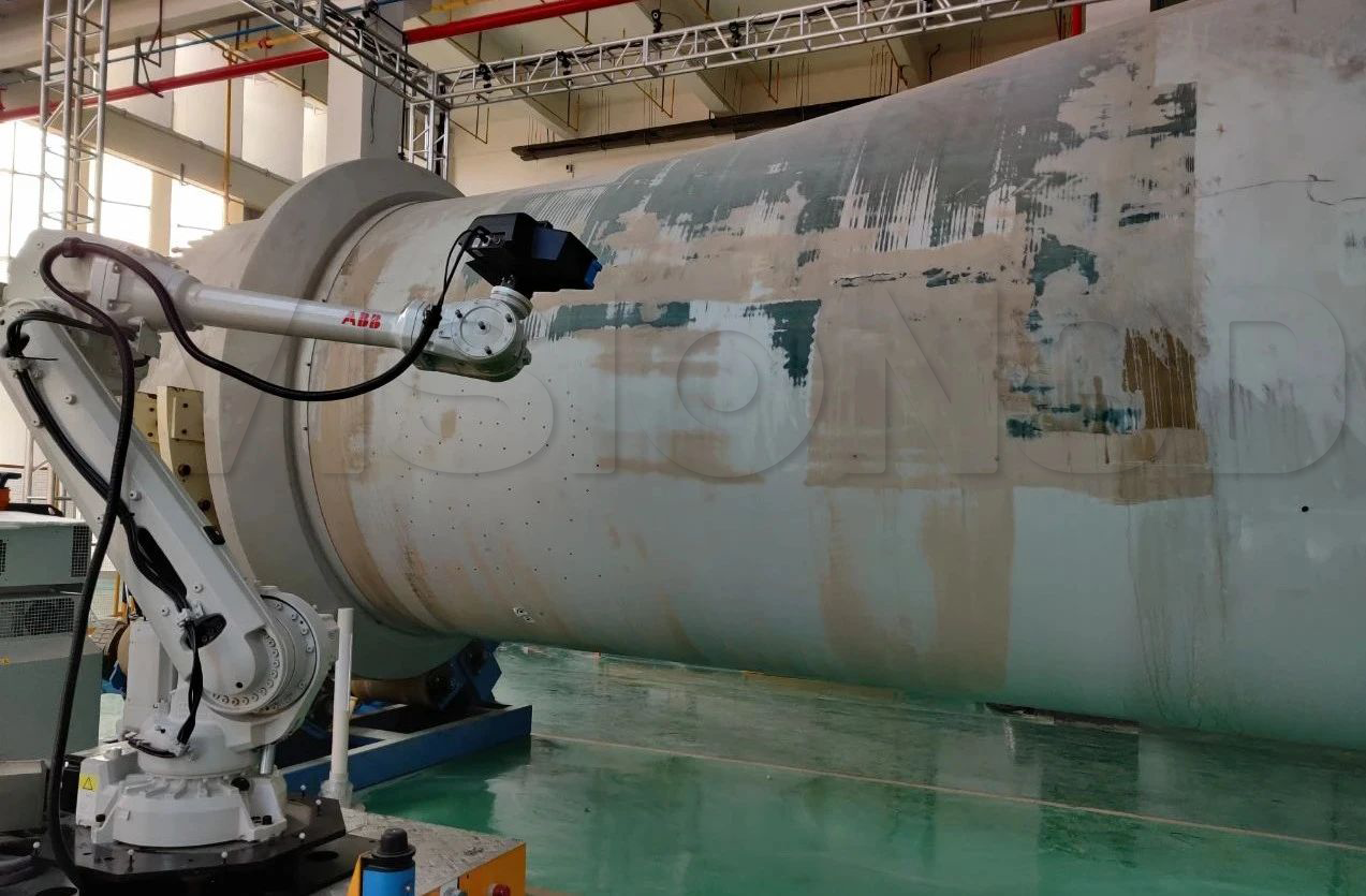 葉片是風(fēng)力發(fā)電機(jī)收集風(fēng)能的關(guān)鍵部件,其外形尺寸精度影響了整個(gè)機(jī)組的安全運(yùn)行以及風(fēng)能轉(zhuǎn)換效率。目前工廠僅依靠成型時(shí)使用的模具精度和人工經(jīng)驗(yàn)評(píng)判風(fēng)電葉片的質(zhì)量,缺乏一種有效的測(cè)量手段。同時(shí)為了解決風(fēng)電葉片人工打磨過程中的作業(yè)環(huán)境惡劣、加工效率低、質(zhì)量不穩(wěn)定等多種問題,采用自動(dòng)化生產(chǎn)線打磨,需要獲取風(fēng)電葉片精準(zhǔn)的形貌三維信息作為數(shù)據(jù)支撐,以指導(dǎo)葉片的自動(dòng)化加工生產(chǎn)。