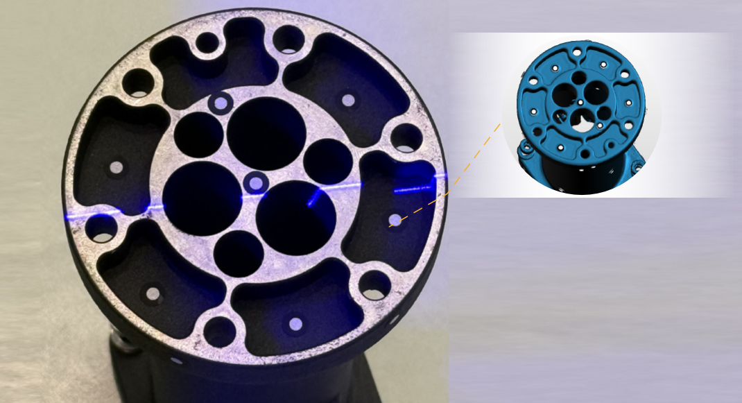 1束藍(lán)色激光線(xiàn)掃描,深入狹窄深孔內(nèi)部進(jìn)行數(shù)據(jù)采集,實(shí)現(xiàn)全尺寸精準(zhǔn)檢測(cè)。