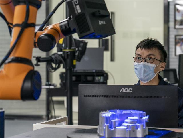 湖北日報(bào)訊(記者魏錸、通訊員張璨龍)4月19日,武漢惟景三維科技有限公司研發(fā)實(shí)驗(yàn)室,技術(shù)人員操縱智能三維測量設(shè)備測試一塊汽車車身構(gòu)件。