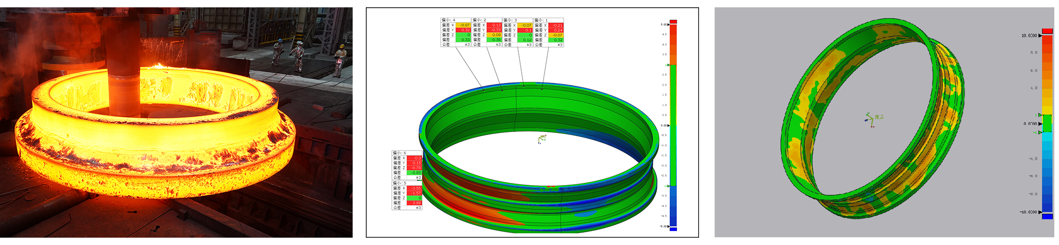 精準(zhǔn)獲取鍛件在高溫紅熱狀態(tài)下的全尺寸形貌數(shù)據(jù),幫助產(chǎn)品工序質(zhì)量控制,預(yù)防成批超差、報(bào)廢等情況,減小材料浪費(fèi),提高生產(chǎn)效率。